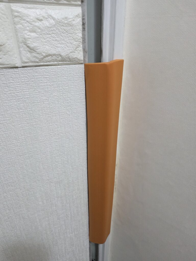 문을 활짝 열면 모서리 가드가 안으로 들어갈 수도 있어요. 이런 경우 벽에 붙히지 않은 쪽에 가드를 하나더 연결해주시거나 도톰한 종이 등을 붙여서 길이를 연장해주시면 된답니다.